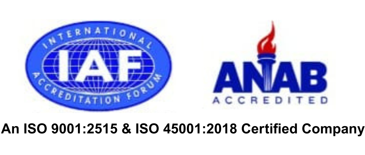 - An ISO 9001:2015 & ISO 45001:2018 ANAB Certified professionally managed company.